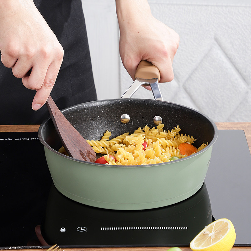 304 stainless steel frying pan flat bottom colorless high temperature lacquered medical stone frying pan 24cm