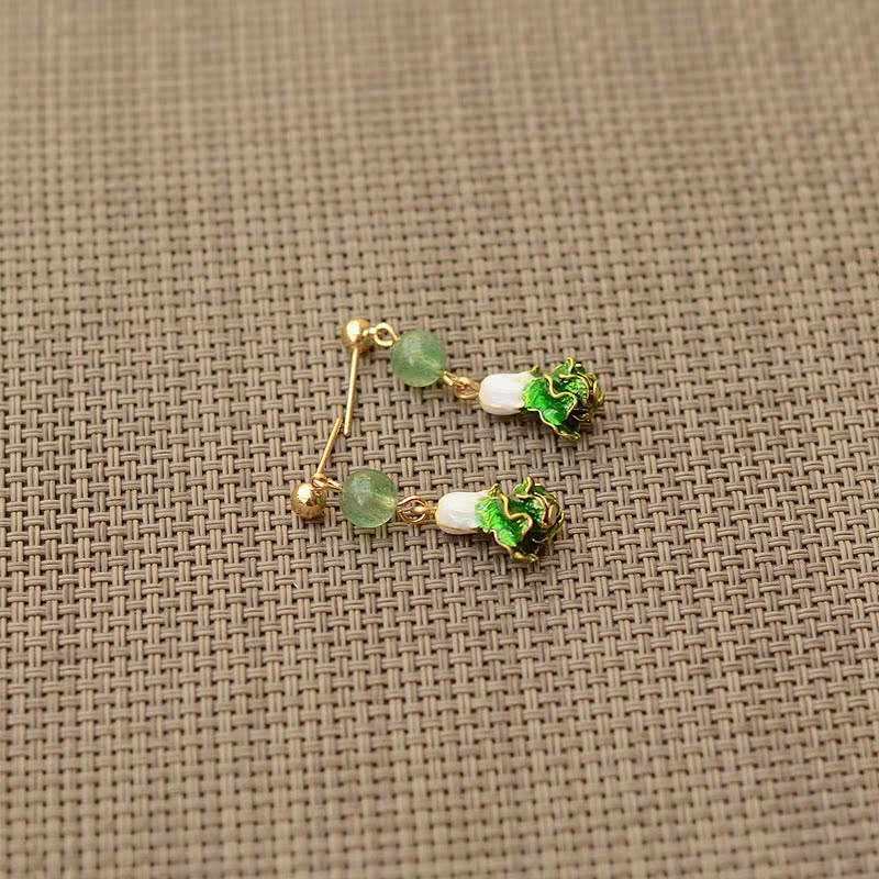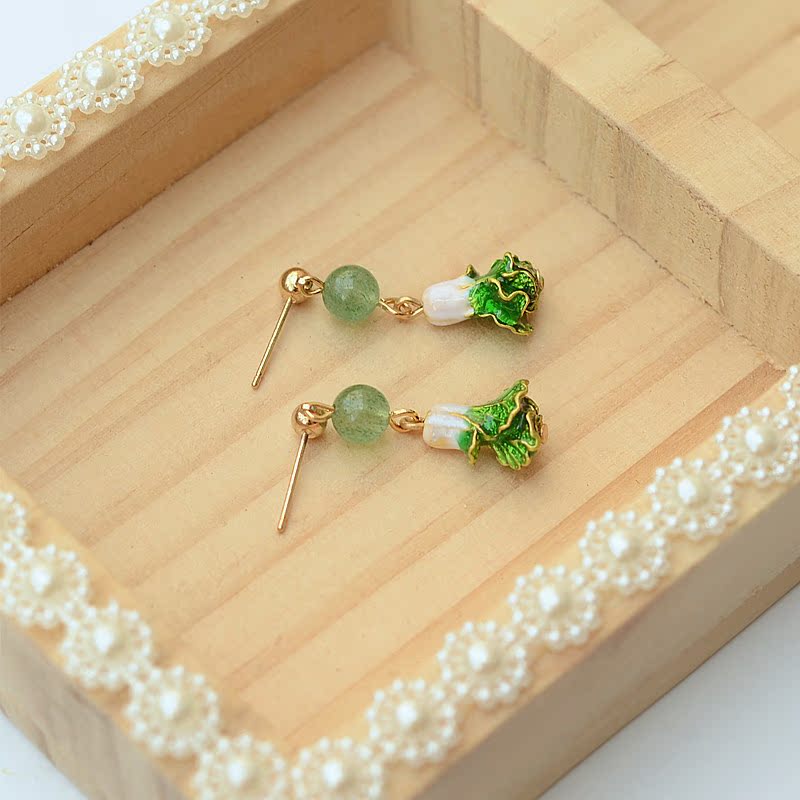 Chinese cabbage earrings natural green strawberry crystal wild original design personality simple temperament earrings earrings female