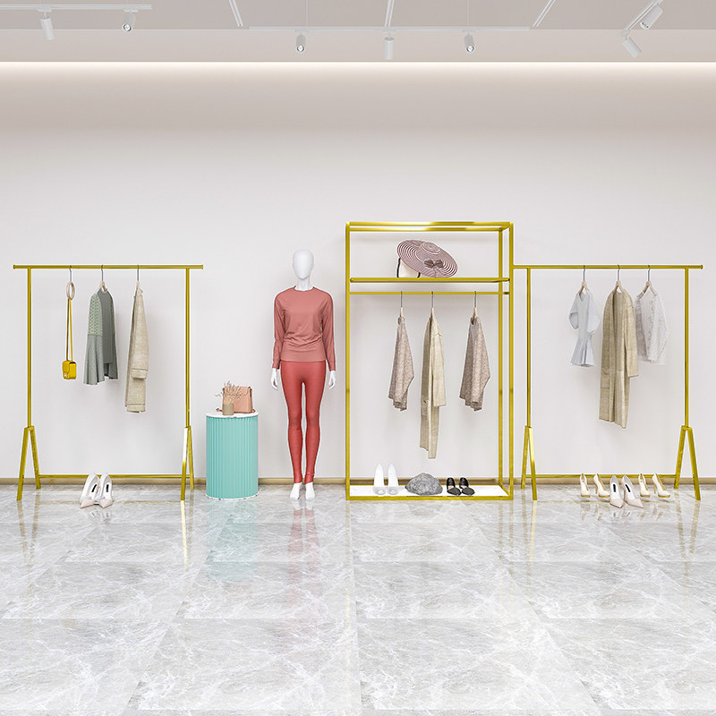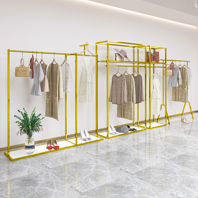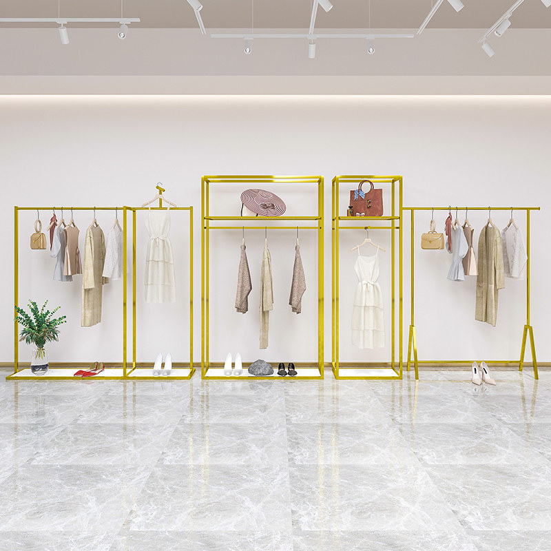 Gu Teng women's clothing store decoration shelves stainless steel gold brushed island shelves floor to ceiling combination women's clothing display shelves