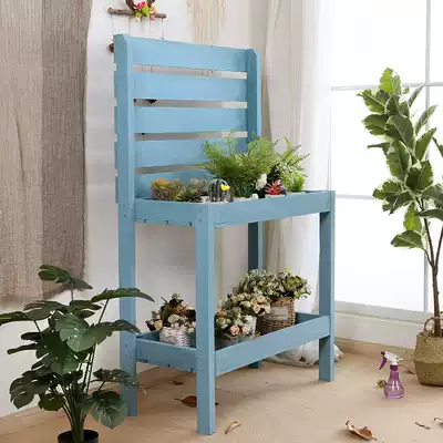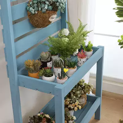 Anticorrosive solid wood floor planter shelf indoor balcony gold Cole pot vintage multi-layer storage