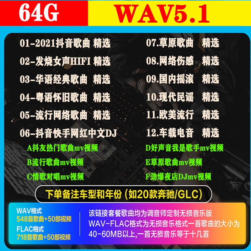 Distortion-free WAV Car Music Songs Pen drive High quality DJ Net 5 1 surround 6x high quality car BMW