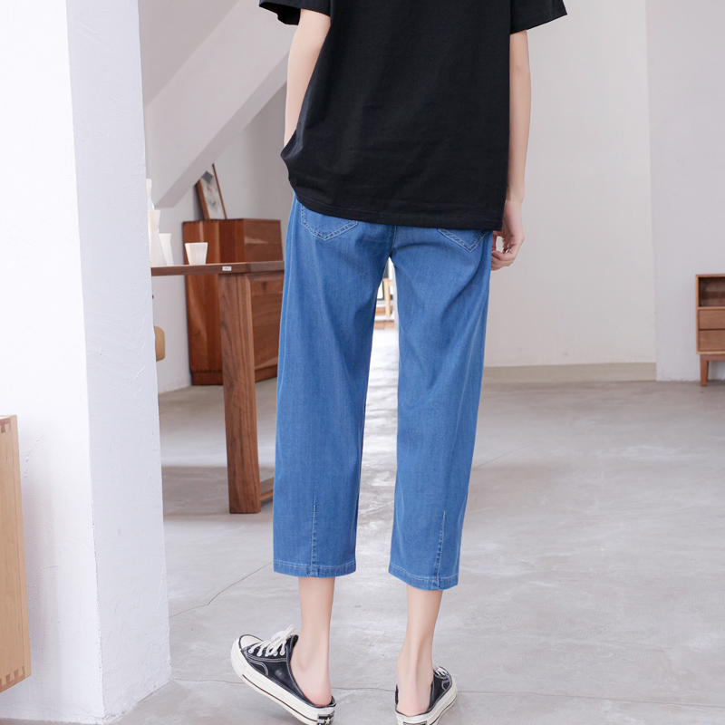Pregnant Woman Sky Silk Jeans 80% Summer Thin Outside Wearing Old Daddy Pants Little Guy 70% Casual Turnip Kharen Pants-Taobao