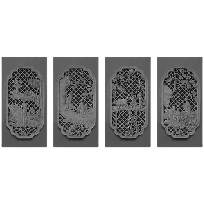 Antique vertical plum, orchid, bamboo and chrysanthemum brick carving ancient architecture Chinese shadow wall background wall decoration decoration quadrangle courtyard wall