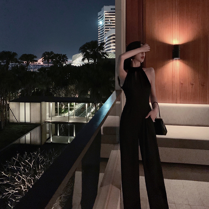 Connected pants female summer 2022 new black sexy disclosure shoulder temperament to collect thin legs pants