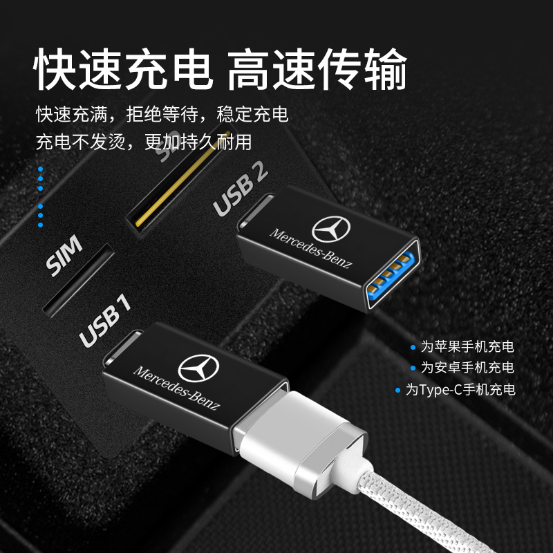 Mercedes-Benz Type-C to USB interface (Mercedes-Benz Type-C to USB interface) A pair of Mercedes Benz Type-C to USB interface (Mercedes-Benz Type-C + Android to USB interface (Mercedes-Benz Type-C) extension (Mercedes-Benz Type-C extension dock to USB(black) dedicated for Mercedes-Benz