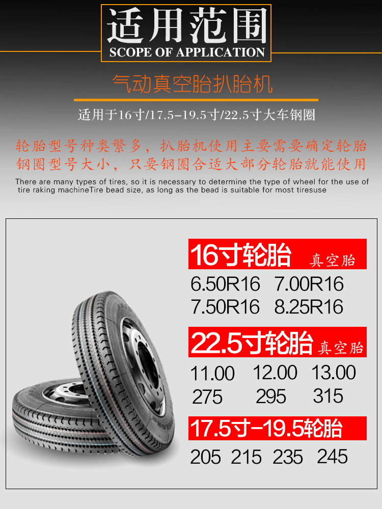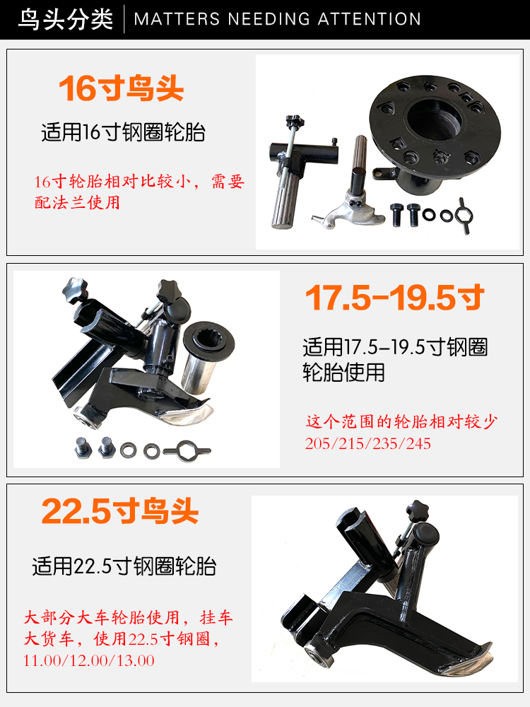 Standard tire changer (without bird head)Standard 22 5 Bird head standard 22 5 16 Bird head standard 22 5 17 5-19 5 Bird head standard