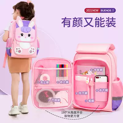 Buenos ultra-light primary school bag female one, two, three, fourth grade children's backpack cute burden reduction shoulder bag