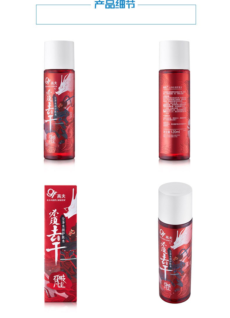 Goff gf dust water clean water moisturizing skin care water 120ml men refreshing hydration and hydration control oil balance