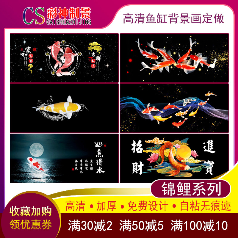 Fish tank hanging painting sticker high-definition custom brocade carp butterfly carp decorative figure 3D external patch thickened self-adhesive without glue