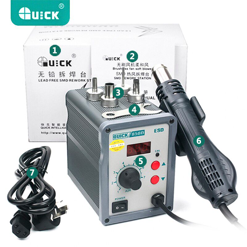 QUICK quick-gram original 858D hot wind dismantling and welding bench mobile phone repair hot wind gun number explicit temperature and gentle rotating wind