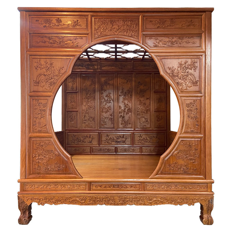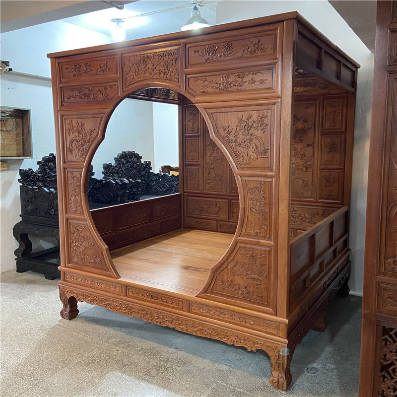 Solid wood imitation complex classical moon cave bed ancient shelf bed Chinese carved thousand workers step bed stepping bed double marriage bed