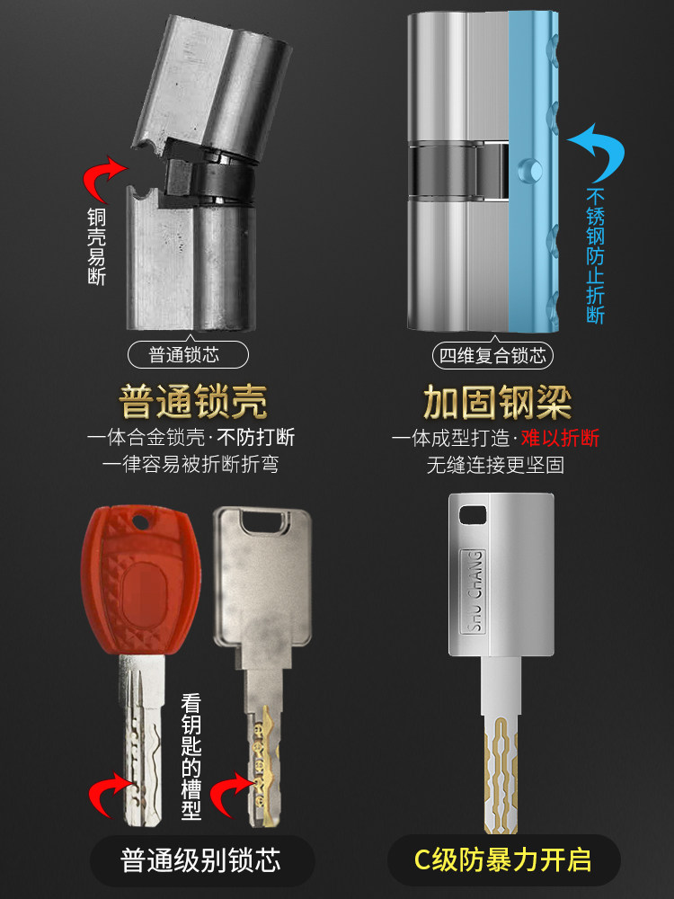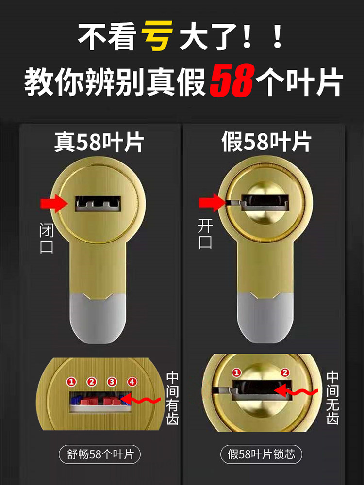 Shuchang anti-theft door lock core super C-class 58 blade lock core anti-riot force to open household universal door lock