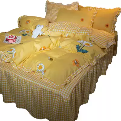 Bed skirt four-piece set Simmons bed cover dust-proof protective cover Pure cotton full cotton edge bed single bed cushion bed cover non-slip
