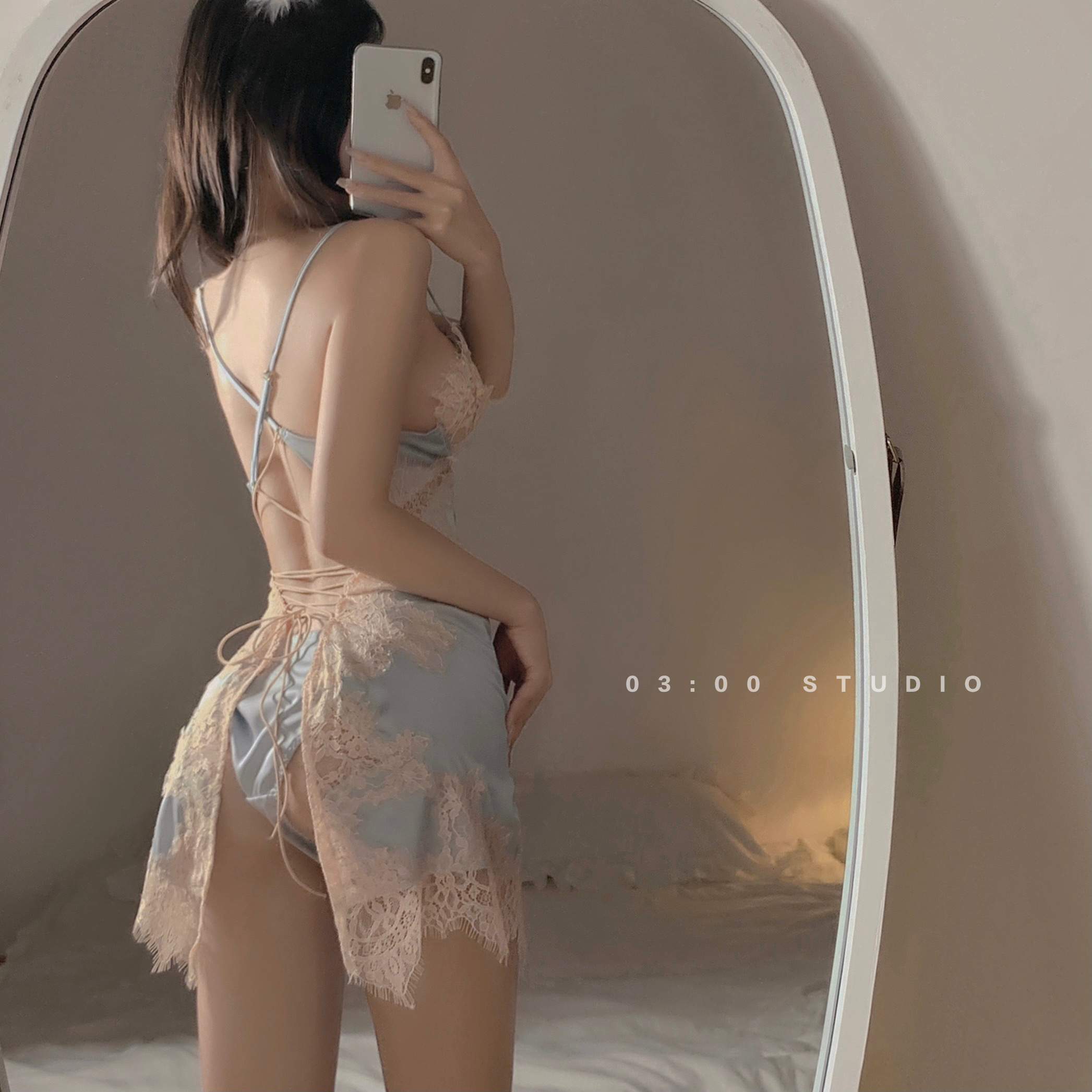 early 3 o'clock early morning lake bottom water blue temperament sexy splicing lace back strap private room harnesses sleeping dresses