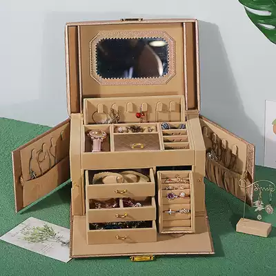Deshi Dragon large-capacity Net Red jewelry box with lock European portable ring earrings necklace storage box high-grade wedding
