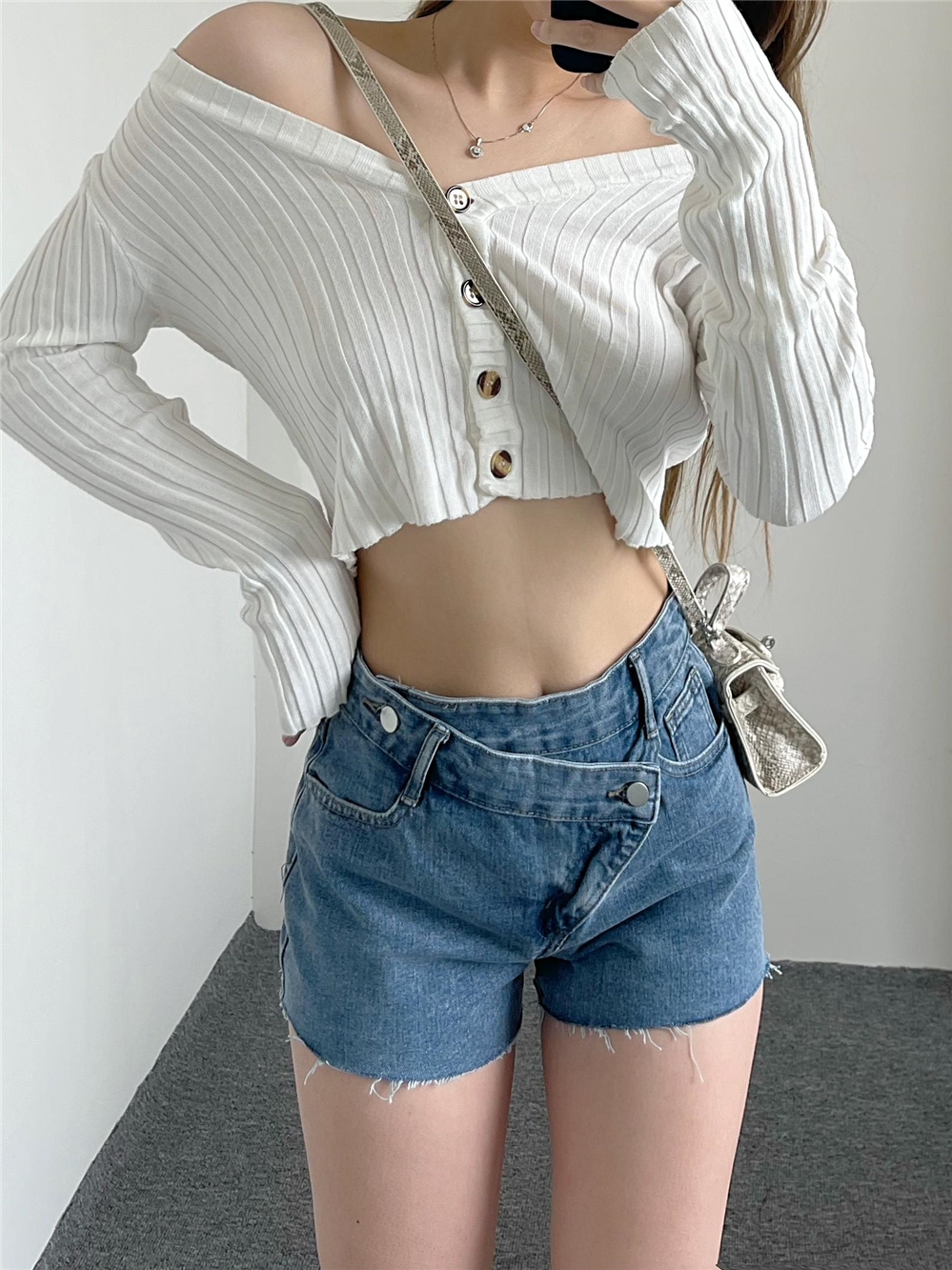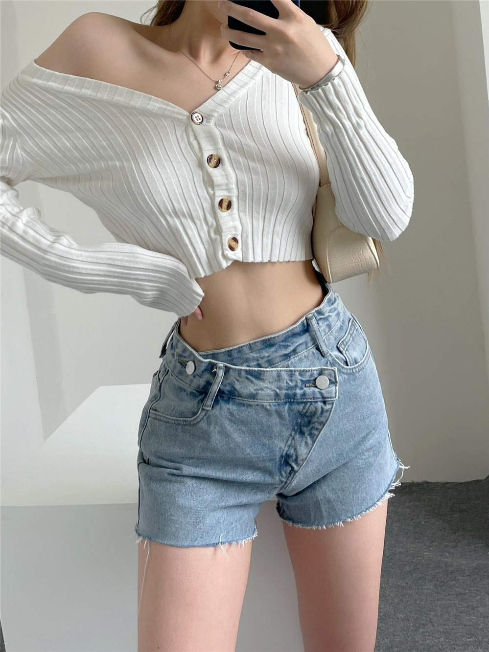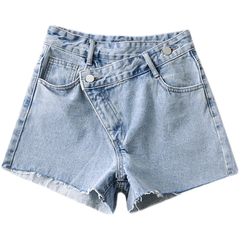 The milk is cute and blue high-waisted denim shorts women's thin section summer thin irregular straight loose hot pants tide