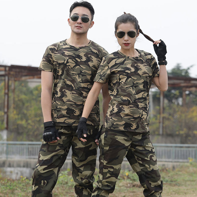 Summer short sleeve thin style camouflate T-shirt camouflate pants breathable special training student military training camouflate suit men's physical wear