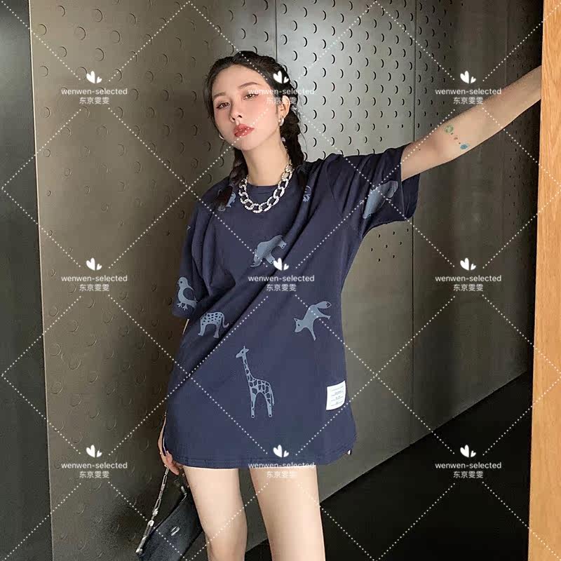 Thom Browne2021 spring summer new TB animal embroidered male and female identical pure cotton loose short sleeve T-shirt