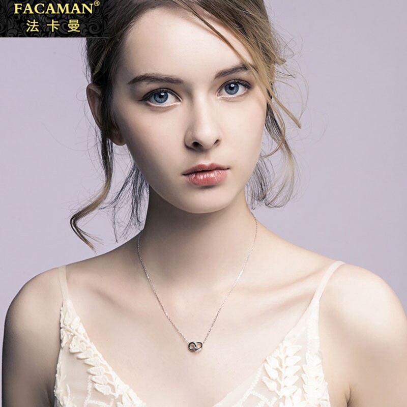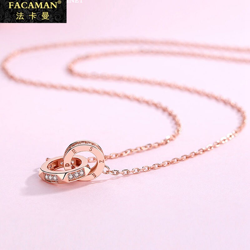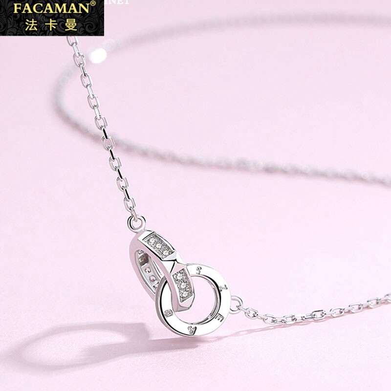 Fakaman Sterling Silver Necklace Women's 2021 New Simple Light Luxury Niche Design Double Ring Pendant Collar Chain Accessory