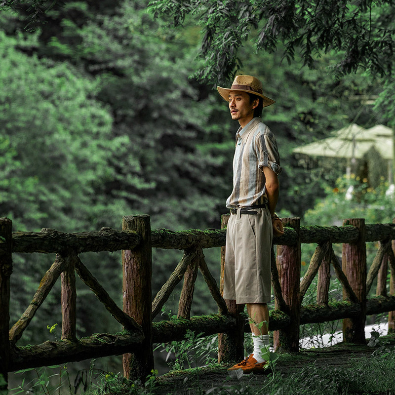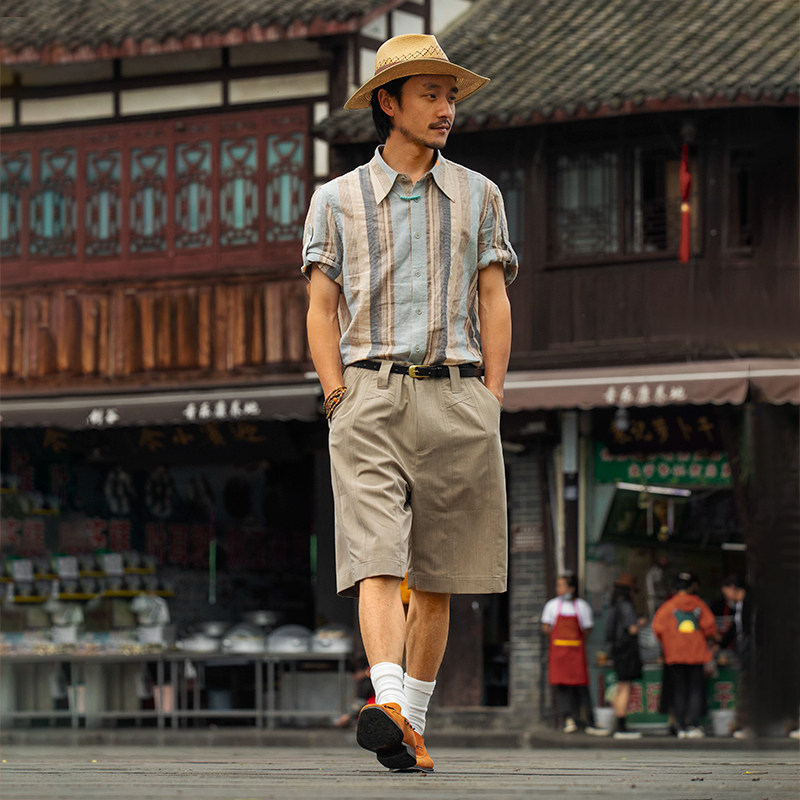 SOARIN Inron retro striped short sleeve shirt male summer slim fit all cotton casual splicing 70% sleeves shirt