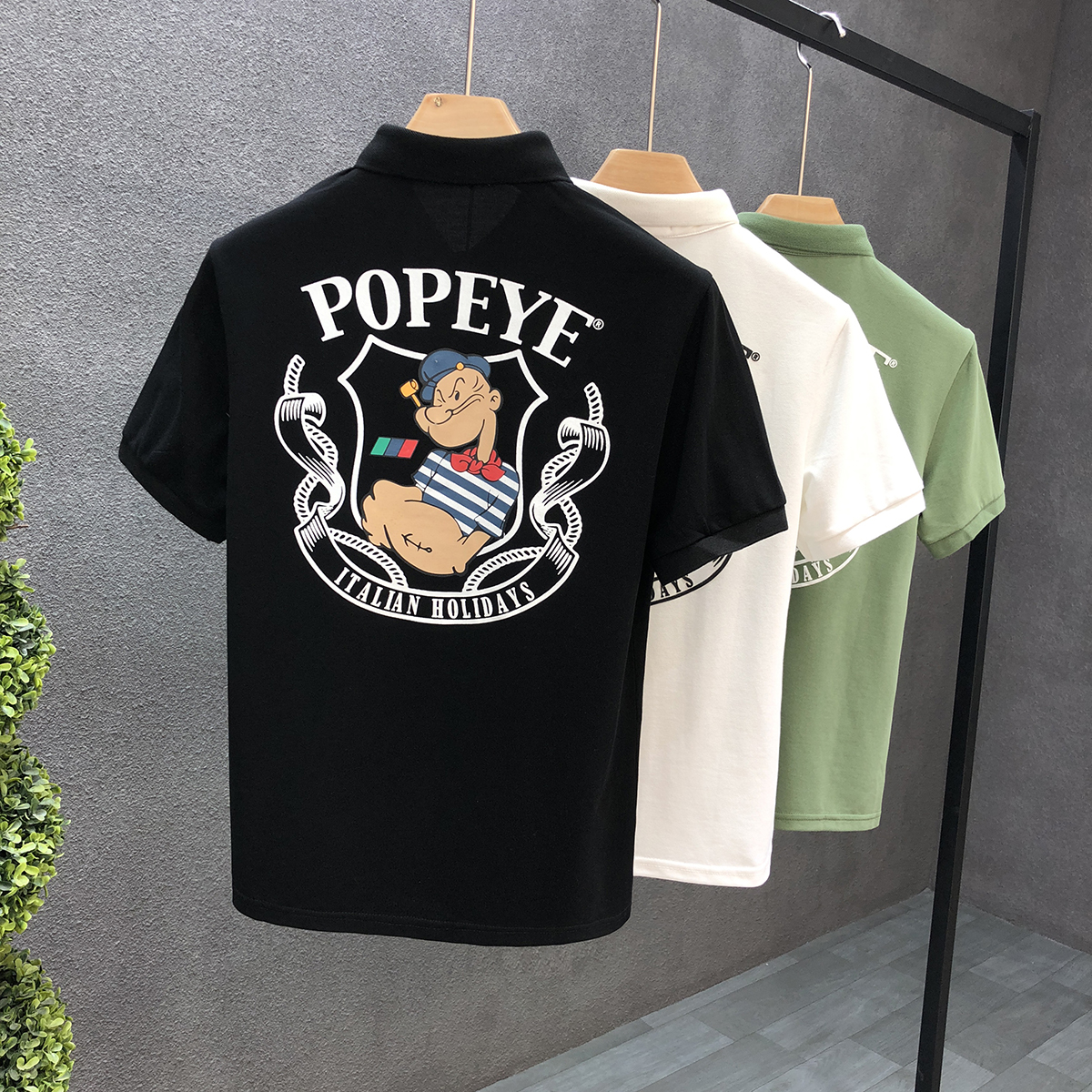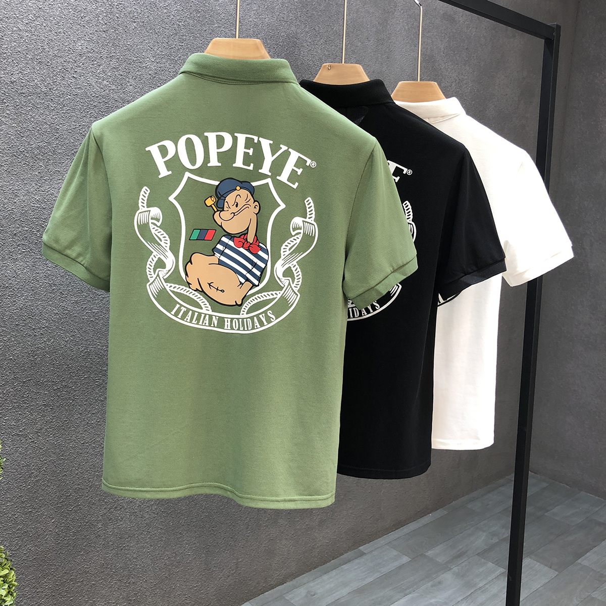 Cartoon printing Polo shirt men's high-end T-shirt tide brand youth 2021 summer new men's short-sleeved collar half-sleeve