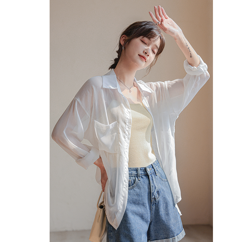 Sunscreen Shirt woman Summer Snow spinning loose sheet Long sleeves Exterior Lap Design Sensation small crowdwhite cardigan jacket jacket