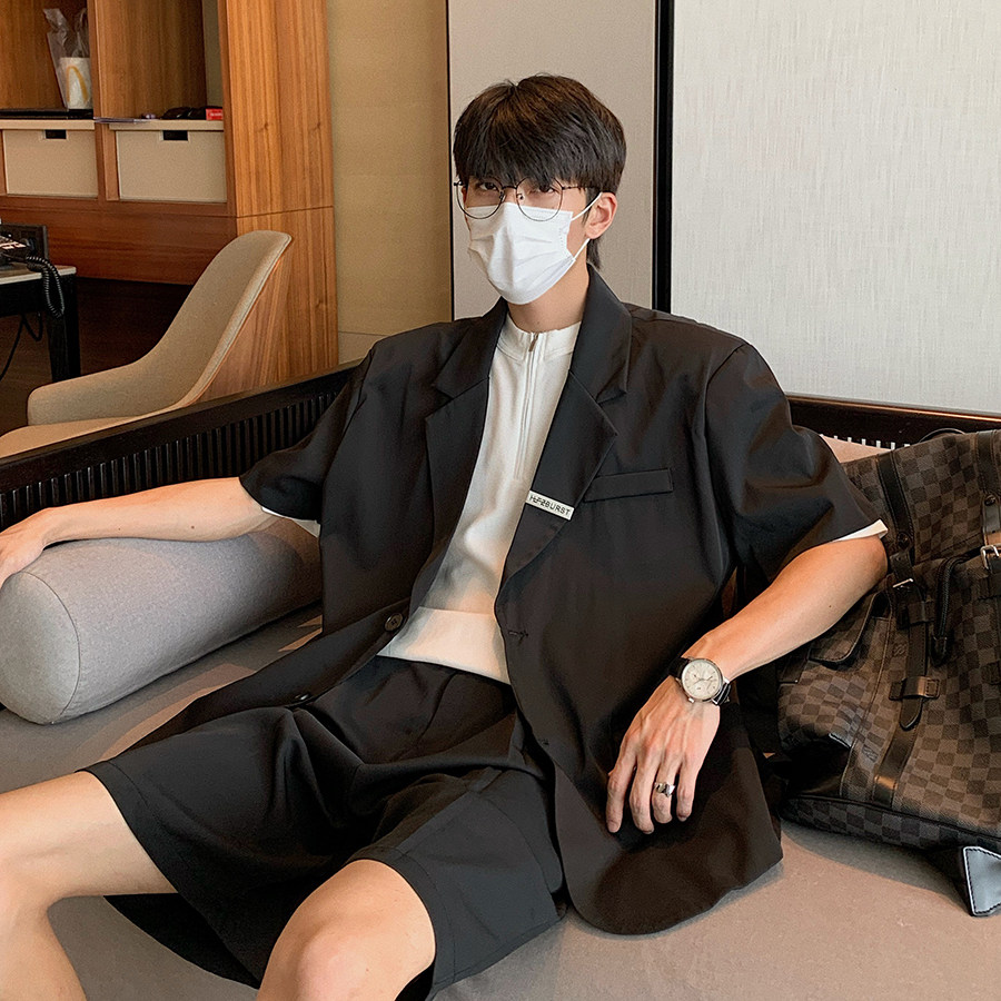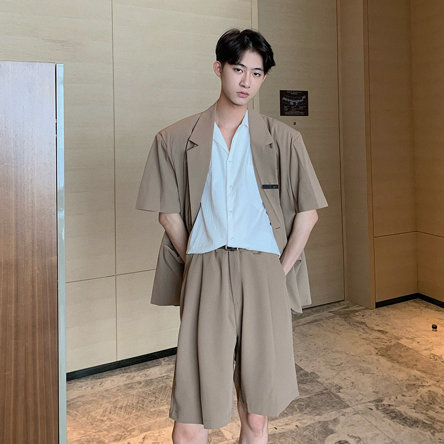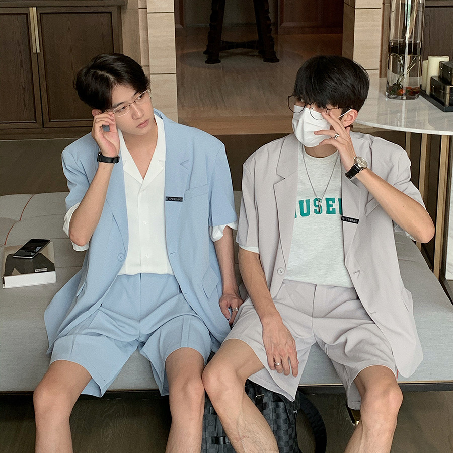 Hualun blue suit suit men's summer casual ins ruffian handsome thin section fashion Korean student short-sleeved suit
