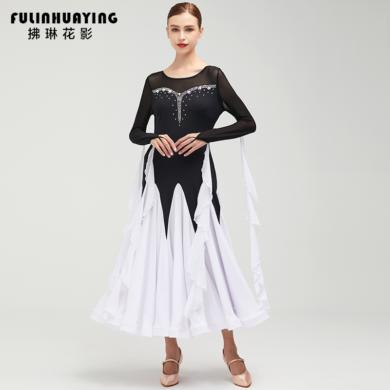 Pre-dawn Flowers Shadow 2021 New Morden Dance Dress Social Dance Big Swing Dress Rehearsée Waltz Dancer Waltz Dancer