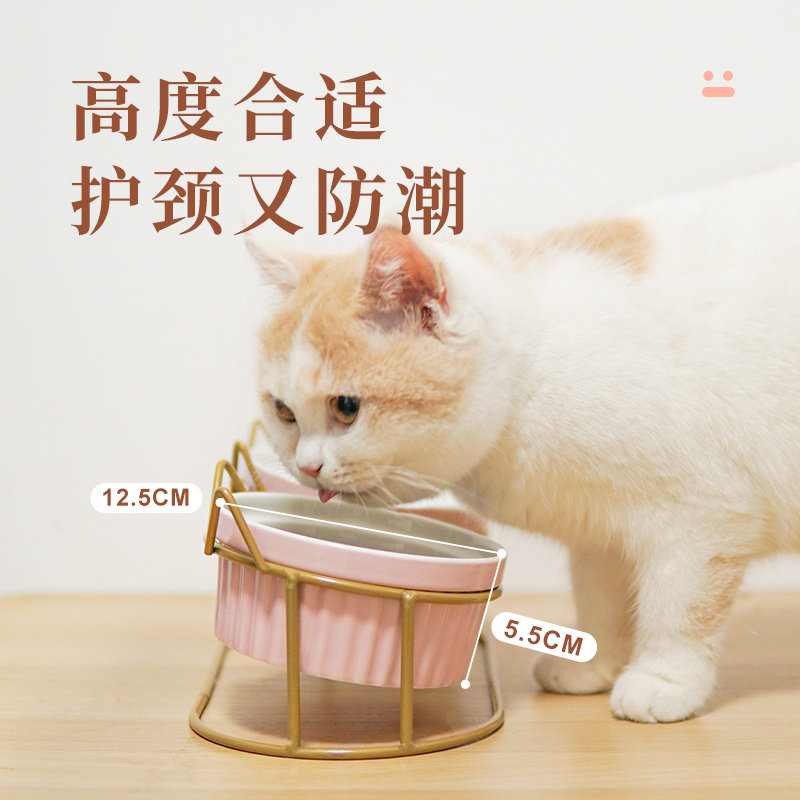 Protective Cervical ceramic Cat Bowl double bowl Cat Food Basin Pet Bowl Dog Food Bowl Cat Food Basin Water Bowl stand Drinking Water Cat Basin