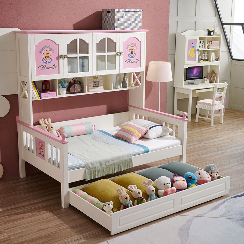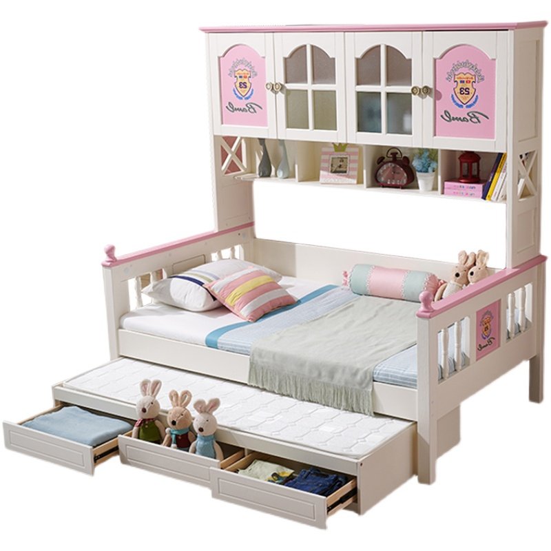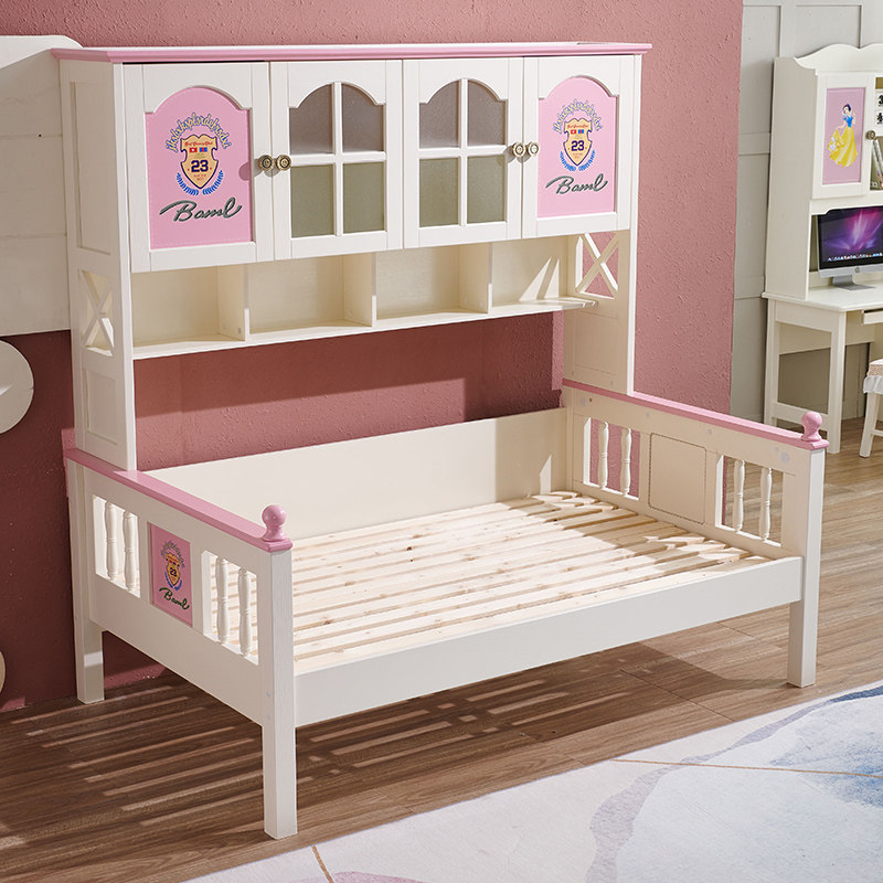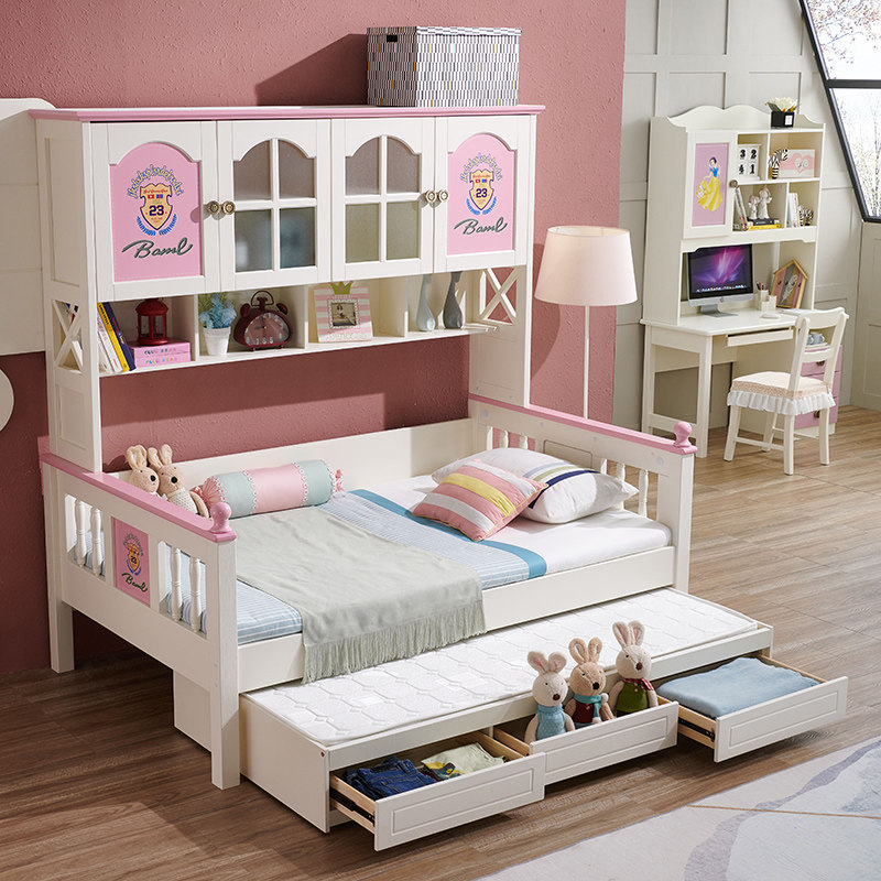 Children's bed single bed girl princess bed all solid wood pink children's half-height wardrobe bed all-in-one drag bed multi-functional