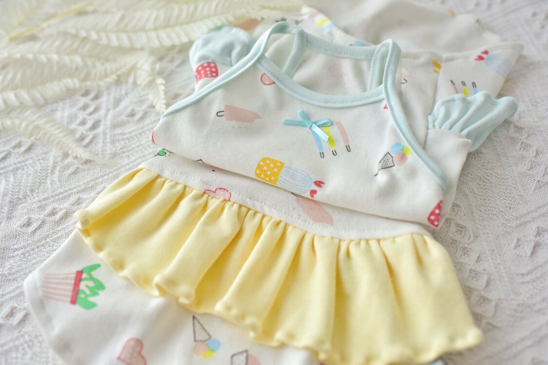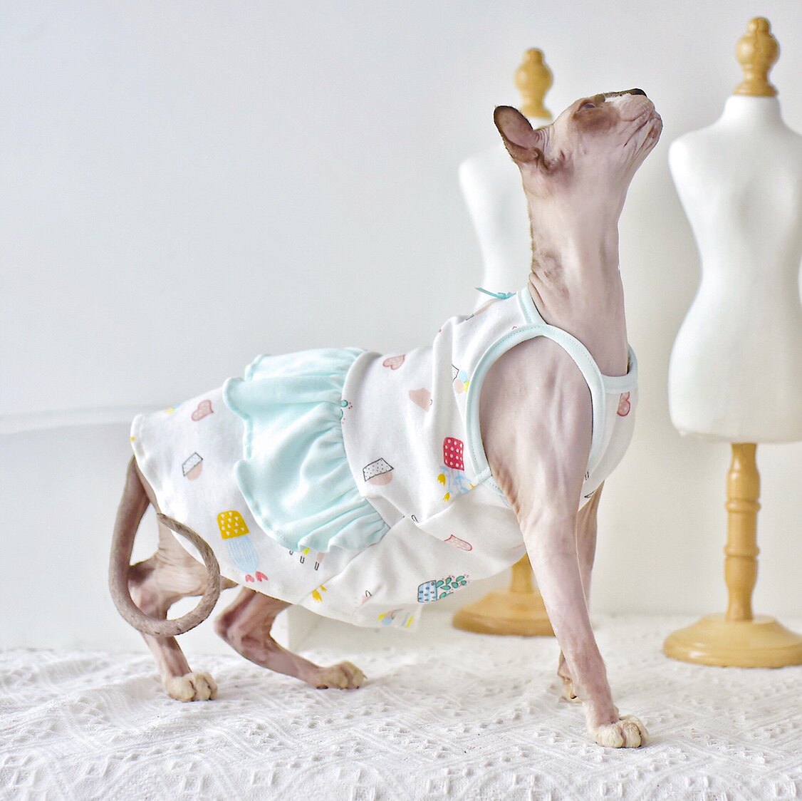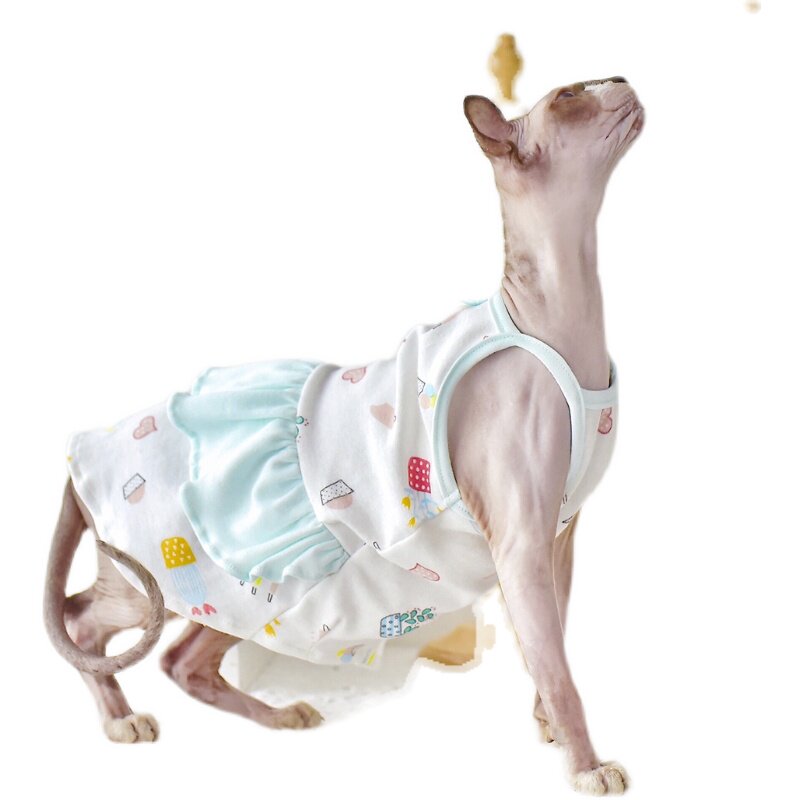 YH - Baby Cream Lotus Leaf Sling Dress Summer Thin Cotton Sleeveless Sphynx Hairless Cat Clothes