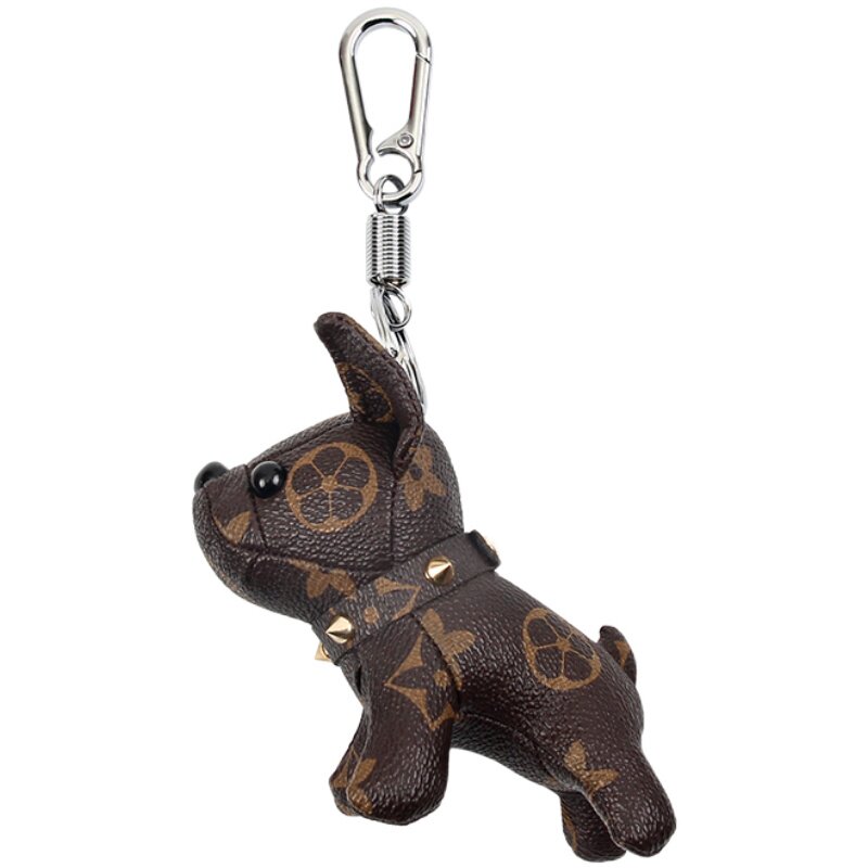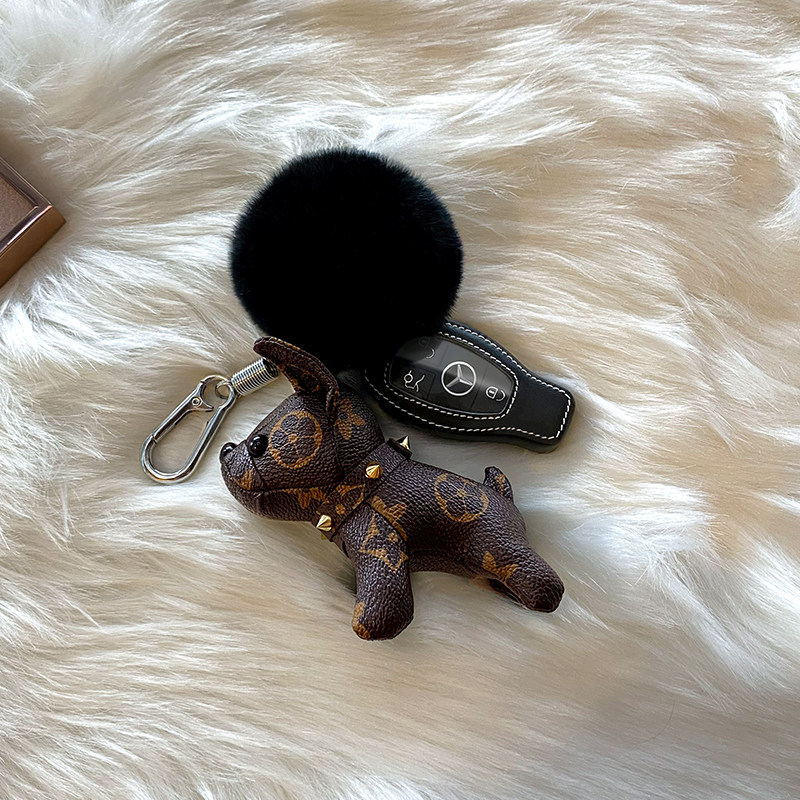 LVGEDETE Bulldog Puppy Car Keychain Pendant Hair Ball Chain Key Ring Presbyopia Bag Ornament