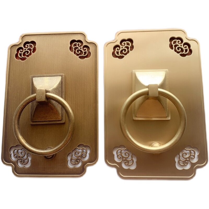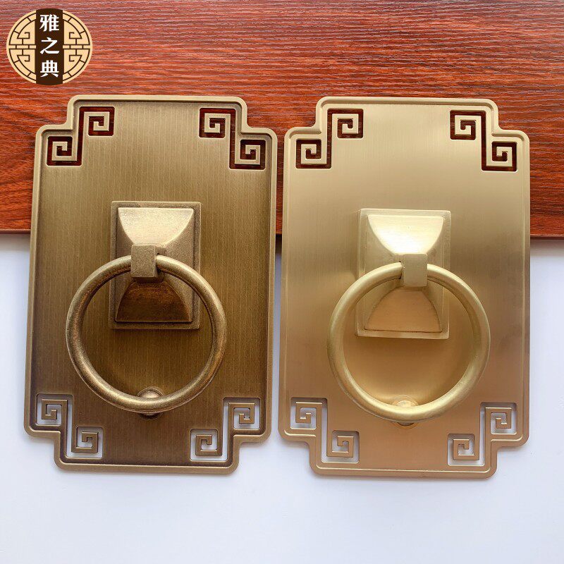 Chinese antique pure copper square handle temple old-fashioned solid wood door handle ancient villa gate ring copper pull ring