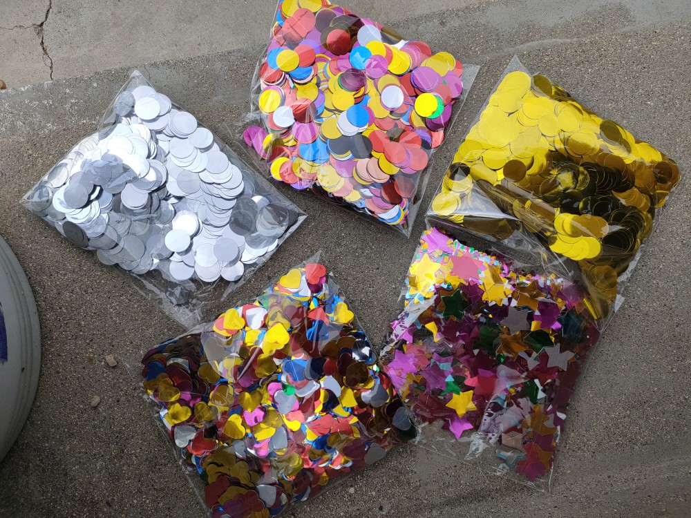 Silver sequin a pack of golden sequin a pack of magic foam balls Colour a pack of 1 feathers One pack 1 5 cm transparent adhesive tape One roll heart shape Color sequin 50 gr pentagram Color sequin 50 gr Round Color