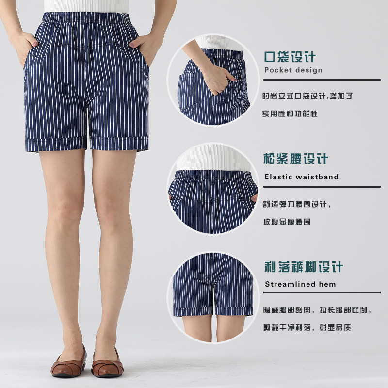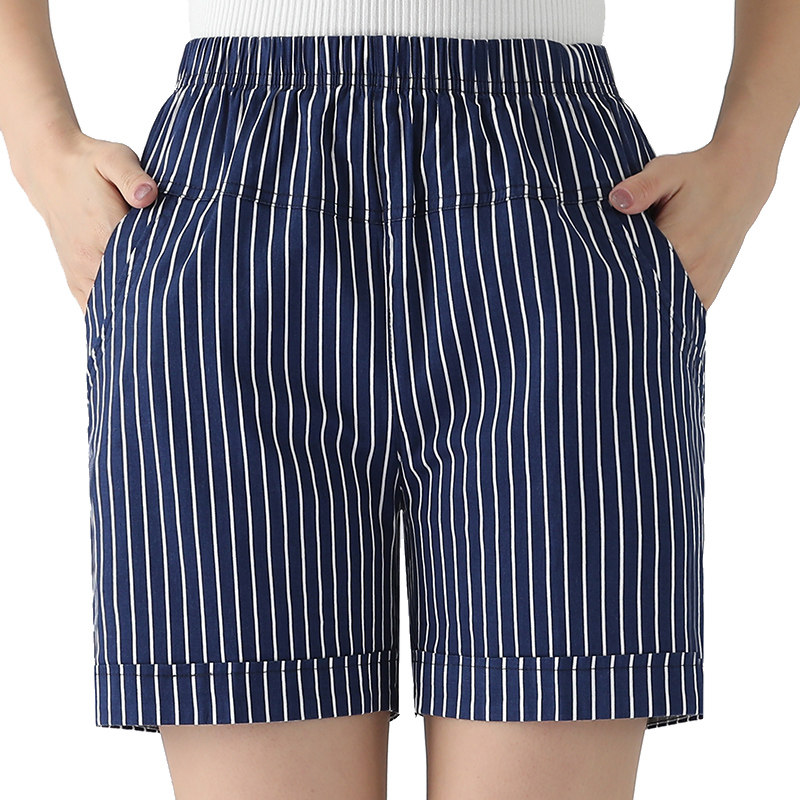 Middle-aged women's clothing trousers casual high waist five pants fashion air loose stripes elastic outer wearing shorts