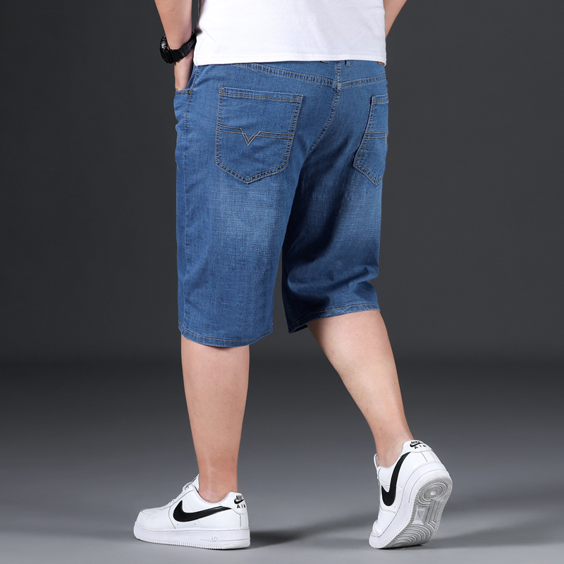 Summer thin denim shorts men's plus size plus size loose straight five-point pants outer wear fat man five-point pants breeches