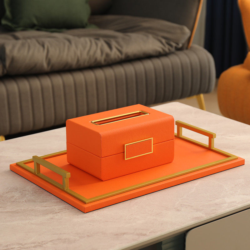 Home Light Lavish Orange Leather Tissue Box Home Living Room Tea Table Remote Control Containing Box Nordic American Toilet Paper Box