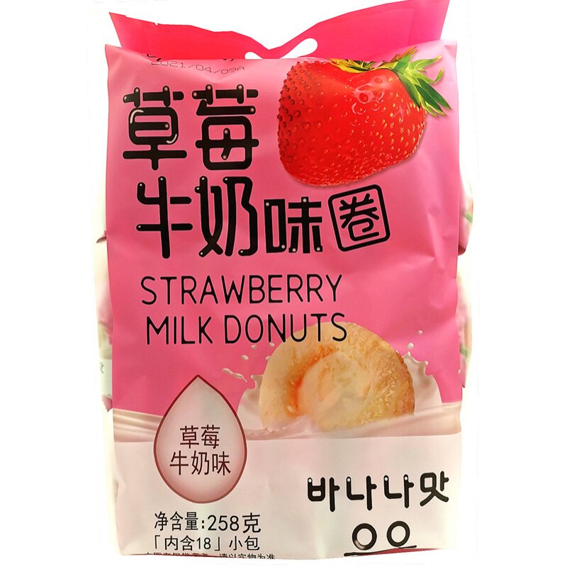 Green Grain King Strawberry Milk Taste Ring 258g18 Independent Pouch Net Red Doughnut Casual Puffed Zero Food Snack