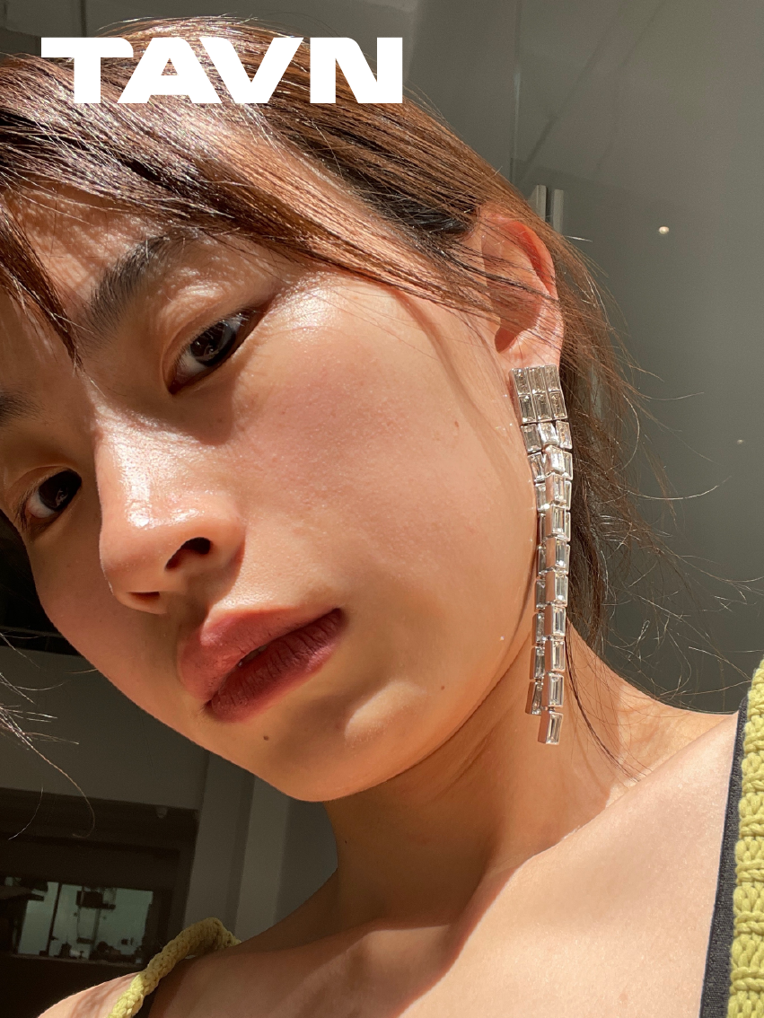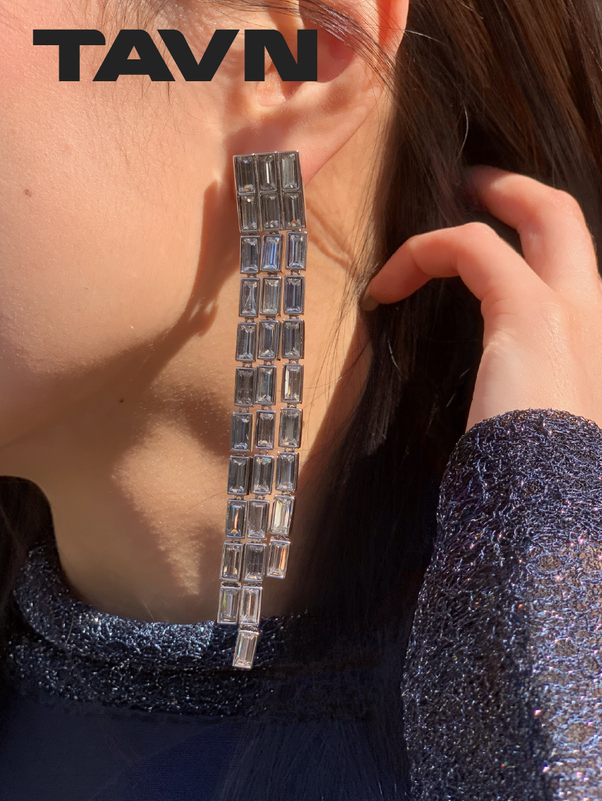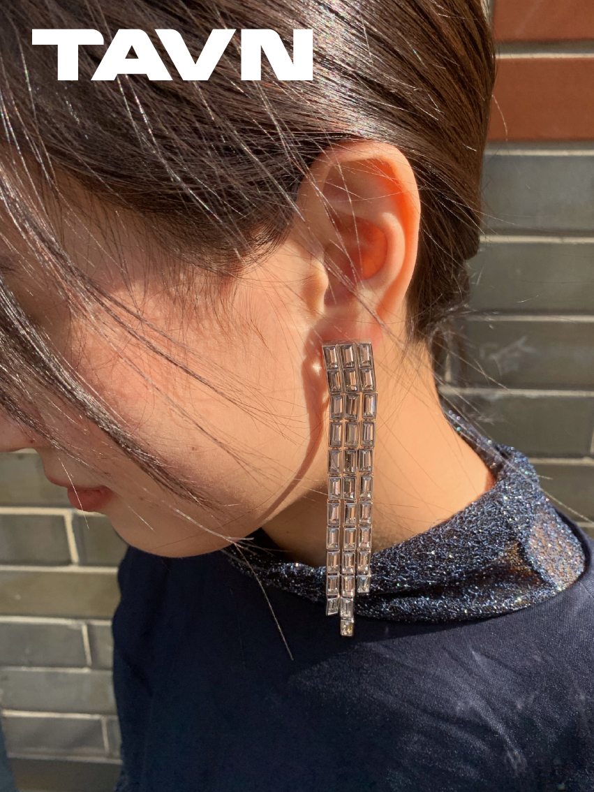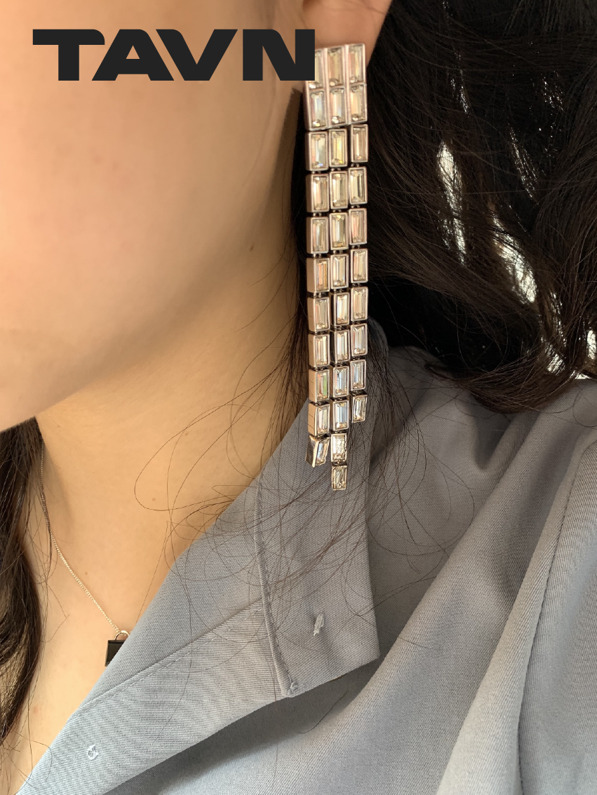 TAVN FANGFANGMARCEAU Design Platinum Plated Gemstone Waterfall Tassel Long Earrings Earrings