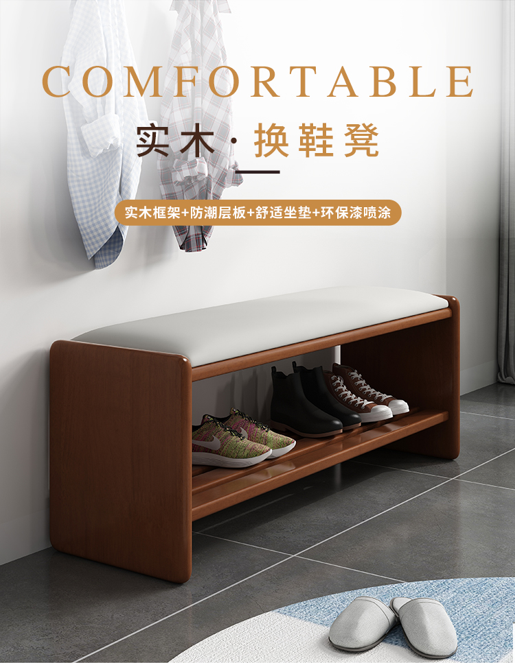 Solid wood shoe changing stool soft bag cushion Nordic minimalist modern wearing shoe stool living room entrance home can sit small shoe cabinet