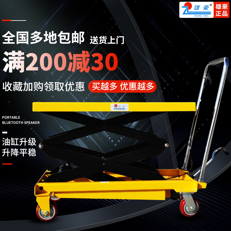 Xionghao Manual lifting platform hydraulic lift mobile lift car electric platform car small push lift truck