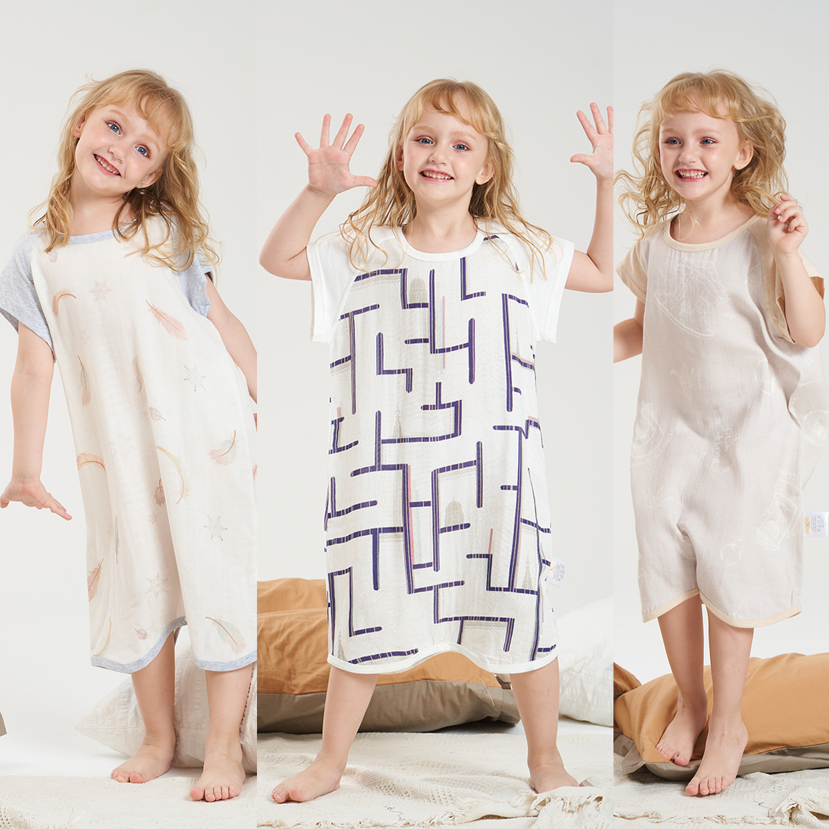 M Home New parent-child pyjamas very soft ~ Bamboo cotton cloth Home Suits Baby Summer Sleeping Bag pro-skin and breathable