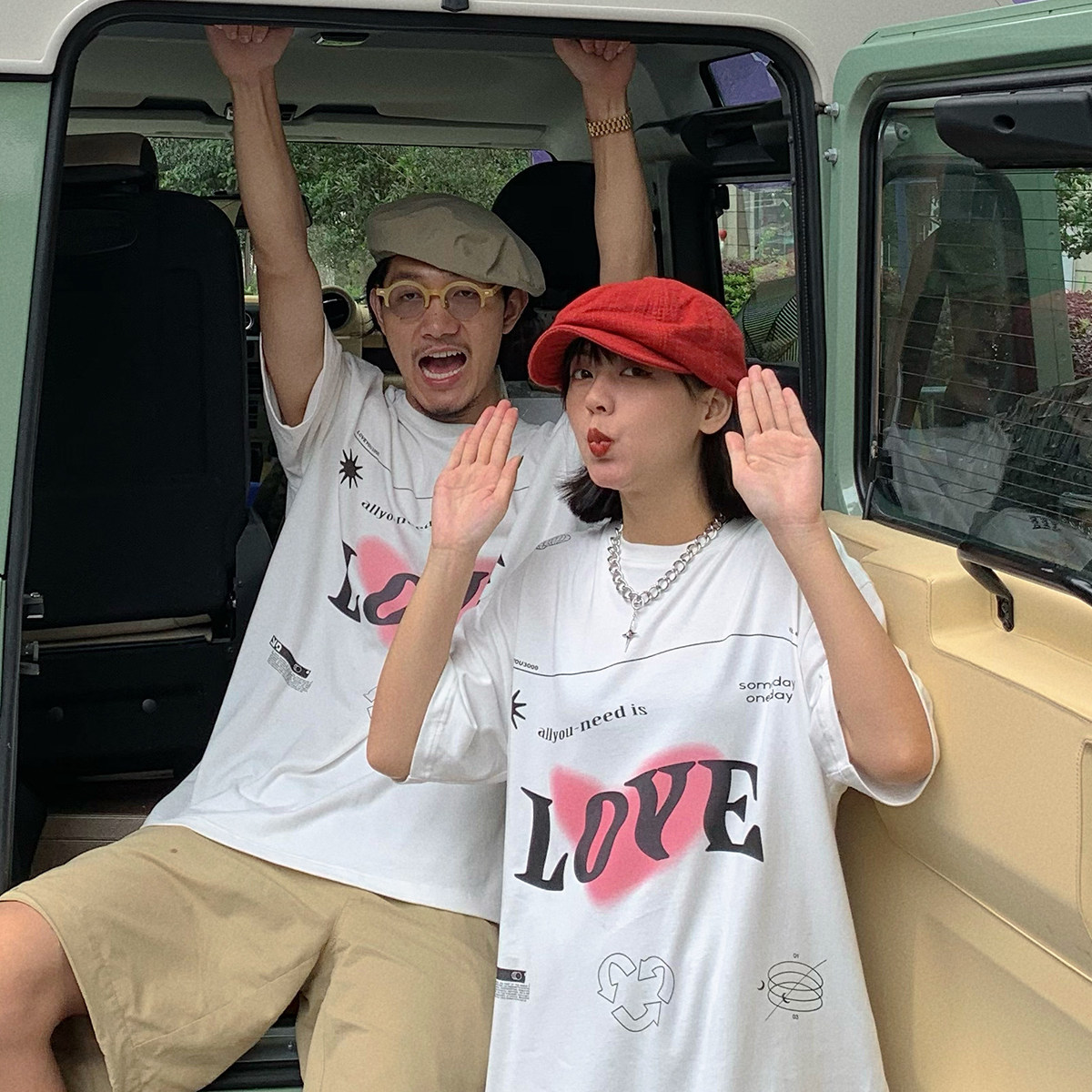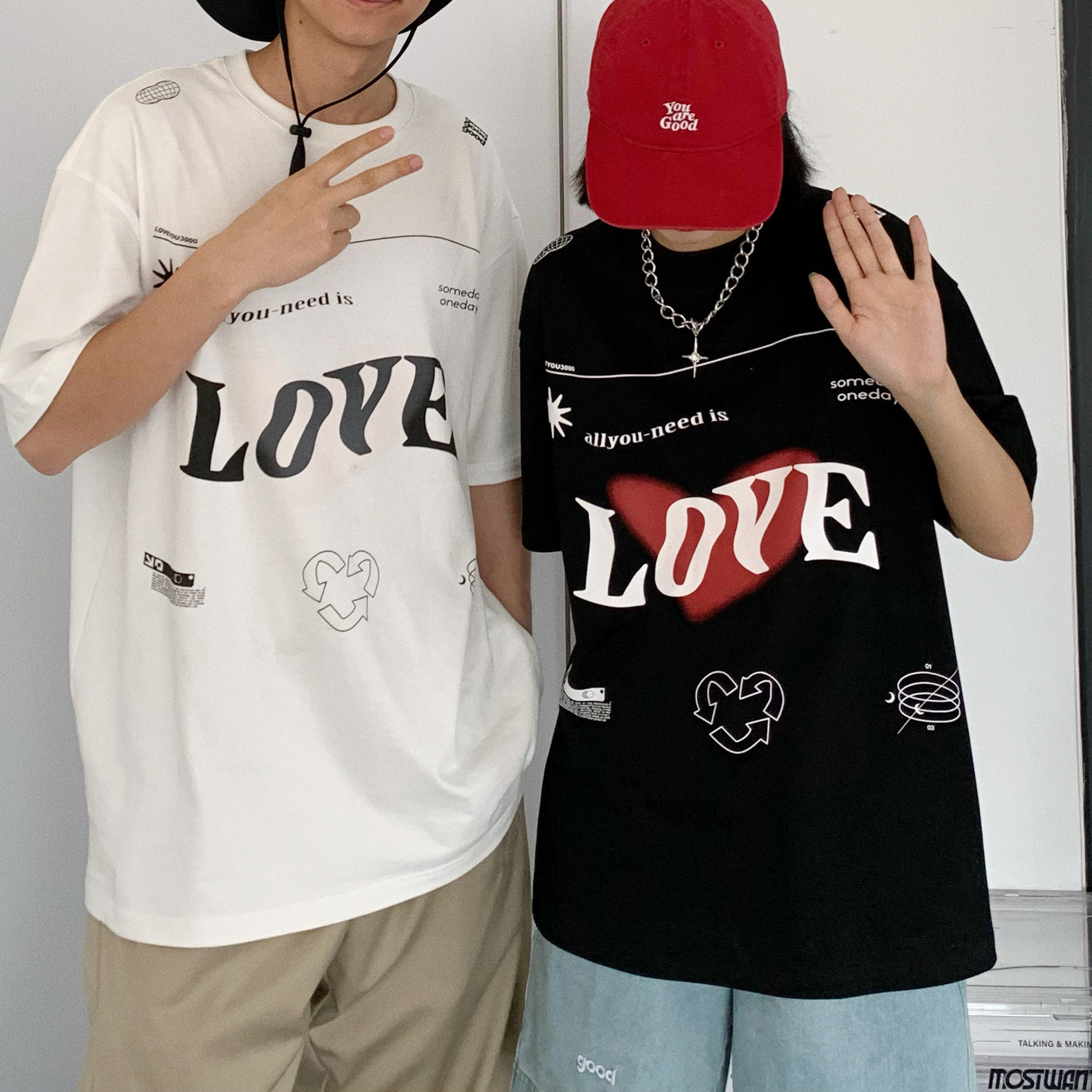 Nice store MeihaoStore white LOVE ultraviolet light discoloration loving pure cotton short sleeve T-shirt lovers