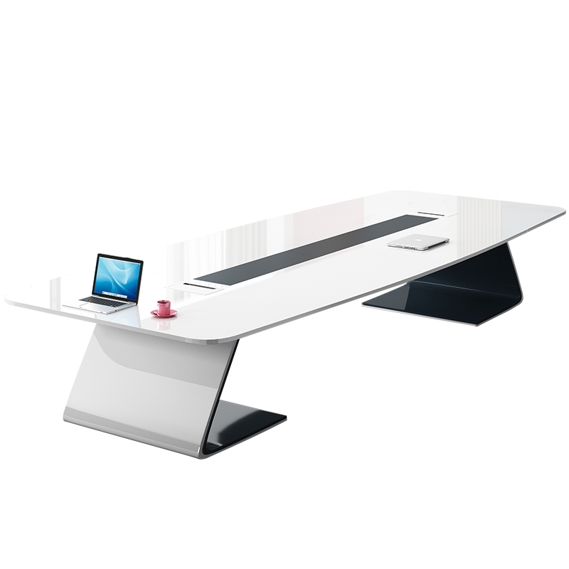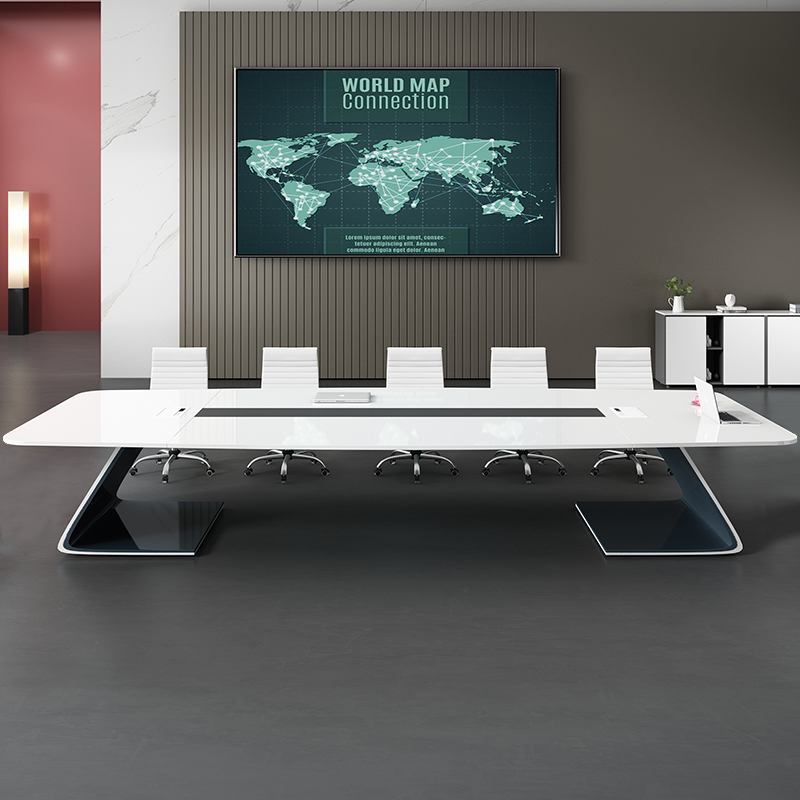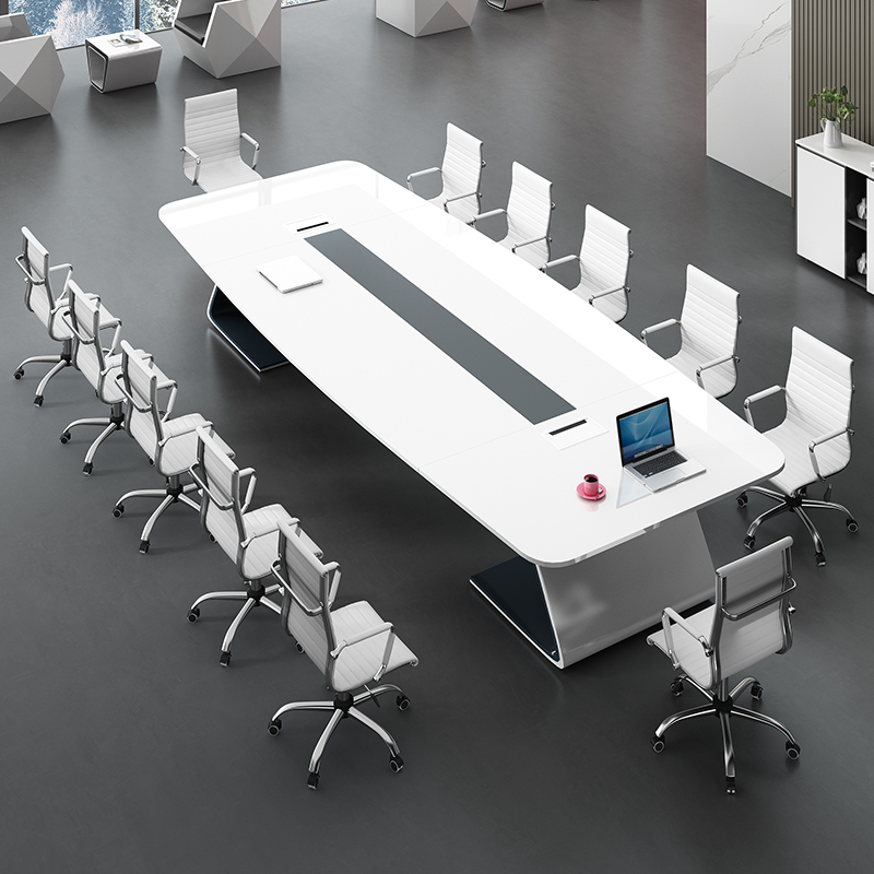 Lacquered conference table bench simple modern white large open conference table chair combination training conference room long table
