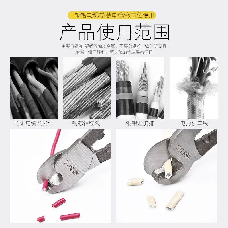 6 inch cable shears (less than 25 square meters) 8 inch cable shears (less than 35 square meters) 10 inch cable shears (less than 50 square meters) 10 inch big head cable shears (less than 65 square meters)