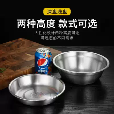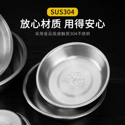 304 stainless steel padded plate seasoning dish household plate bowl male deepened round flat fruit barbecue flat plate