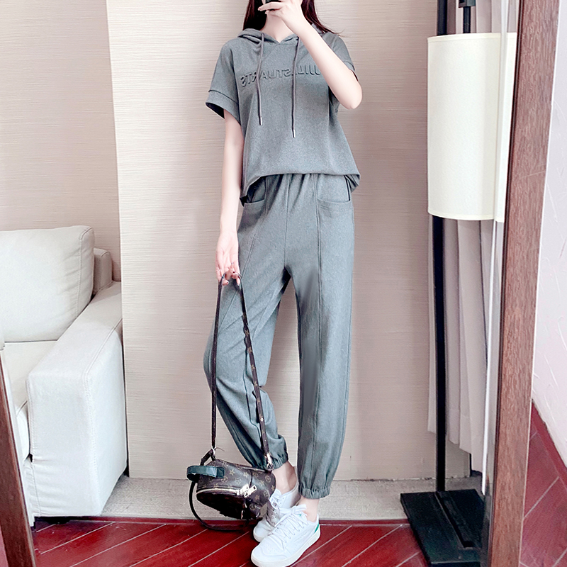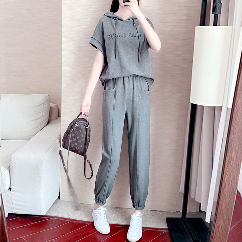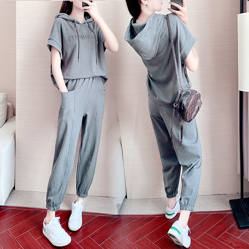 European Station Summer Loose Sportswear Casual Suit Women Fashion Trends Short Sleeves Leaners Slimmer two sets