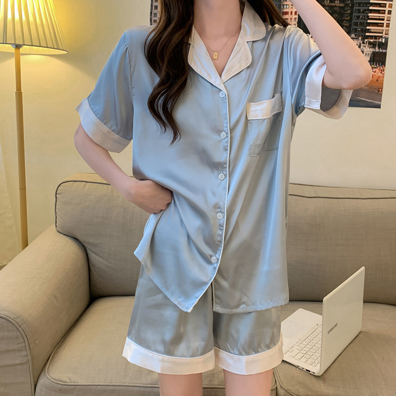 Ice wire pajamas 2022 new in summer brand short sleeve two pieces of red Korean version sweet home clothing