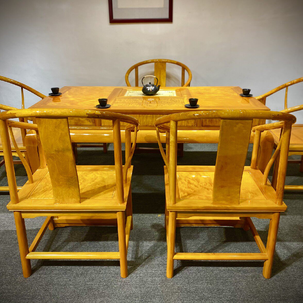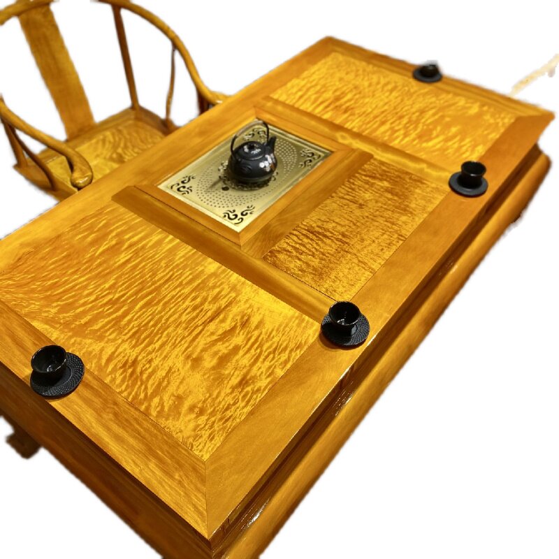 Golden Silk Nanmu Tea Table Pure Solid Wood Chair Composition New Chinese Style Zen Tea Table Home Office Tea Making Table