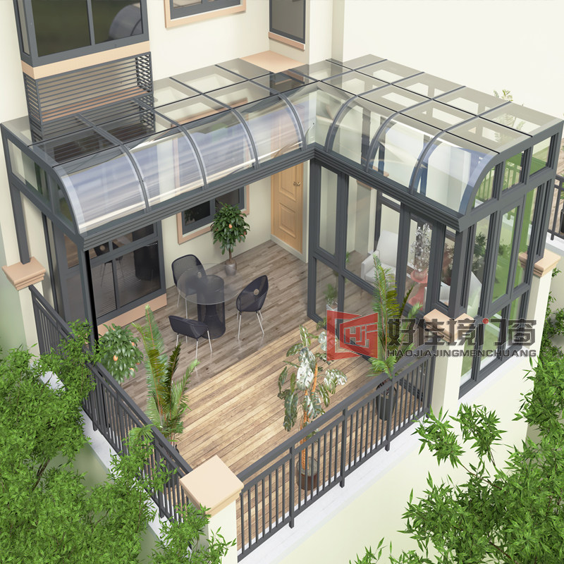 Villa Central European style aluminum alloy Canopy Greenhouse Tempered Glass Platform Seal Bridge Aluminum Doors And Windows Balcony Customize